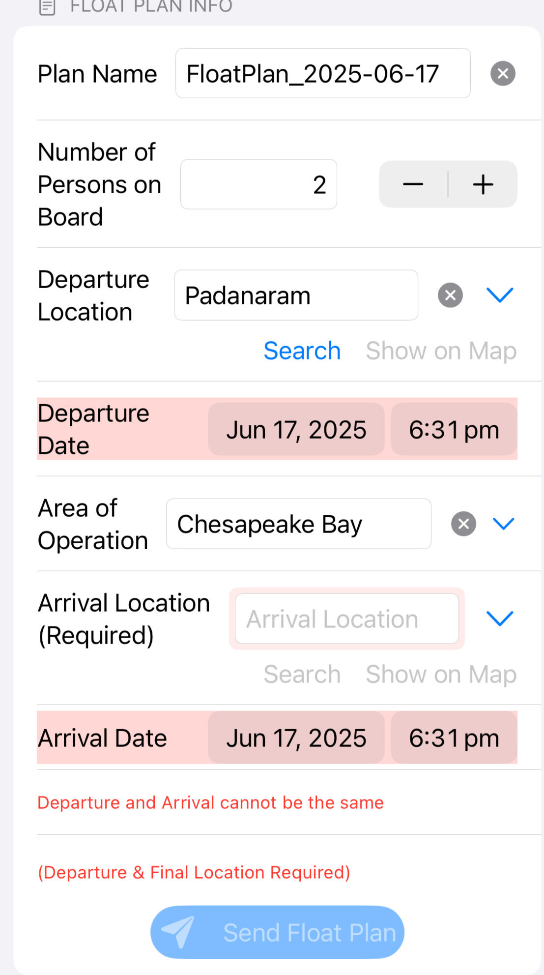Float Plan Messenger makes it simple.You can enter just the essentials to help rescuers locate you and your vessel — or fill out a full USCG style Float Plan for greater detail.